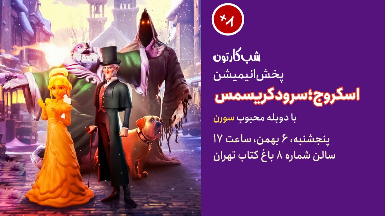 انیمیشن اسکروج روز پنجشنبه 6 بهمن ماه از ساعت 17 در سالن شماره 8 باغ کتاب نمایش داده میشود. علاقهمندان میتوانند از طریق سایت باغ کتاب به نشانی event.bagheketab.com اقدام به تهیه بلیت کنند.